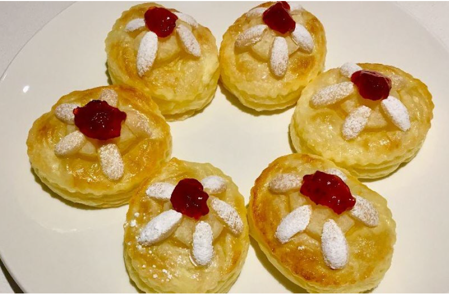 Puff paste circles decorated with almond ‘petals